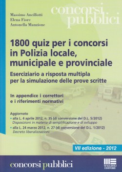 MILLEOTTOCENTO QUIZ PER I CONCORSI IN POLIZIA LOCALE MUNICIPALE E PROVINCIALE