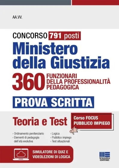 Il manuale è un utile strumento di preparazione al Concorso indetto dal Ministero della Giustizia per 791 posti, per il profilo dei 360 funzionari di professionalità pedagogica.