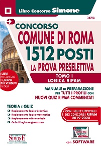 Questo Manuale, valido per tutti i profili, è formato da due Tomi indispensabili per la preparazione alla prova preselettiva, basata prevalentemente su quesiti attitudinali a risposta multipla di logica RIPAM. In particolare, questo Tomo I "Concorso Comune di Roma 1512 posti - La Prova preselettiva - Tomo I Logica RIPAM" permette di esercitarsi con tutte le tipologie di quiz di logica RIPAM, dalle più vecchie fino a quelle degli ultimi concorsi 2019-2020, proponendo schede esplicative delle tecniche di risoluzione e oltre 2.500 quiz ufficiali commentati di: — Ragionamento logico-deduttivo (relazioni di parentela e di ordine e grandezza; deduzioni semplici; sillogismi; negazioni; condizione sufficiente / necessaria / necessaria e sufficiente; ragionamento astratto e abilità visive); — Ragionamento logico-matematico (aritmetica e progressioni aritmetiche; criteri di divisibilità; numero massimo e numero minimo; Massimo Comun Divisore e minimo comune multiplo; media aritmetica e pesata; proporzioni e mappe topografiche in scala; percentuali e frazioni; algebra: equazioni e sistemi lineari; velocità; calcolo combinatorio; probabilità; serie numeriche, alfabetiche, alfanumeriche; insiemi); — Ragionamento critico-verbale (grammatica; anagrammi; sinonimi e contrari; associazioni e abbinamenti di parole; significati di termini e modi di dire; frasi, brani e parole da completare; serie di termini; proporzioni verbali; comprensione di brani). Inoltre, alla luce di talune indicazioni fornite dal RIPAM riguardo all’aggiornamento delle proprie banche-dati, vengono proposti anche quiz di logica anglosassone che presentano alcune peculiarità rispetto alle tipologie di test tradizionali. A completamento dell’opera, un software (accessibile tramite QR-Code) comprendente tutti i quesiti contenuti nel volume e migliaia di quiz ufficiali di logica somministrati negli ultimi concorsi RIPAM 2019-2020, per infinite esercitazioni e simulazioni della prova d’esame. Per completare la preparazione alla prova preselettiva è necessario integrare lo studio con il Tomo II di questo libro: “Concorso Comune di Roma 1.512 posti. La prova preselettiva-Discipline giuridiche”. |